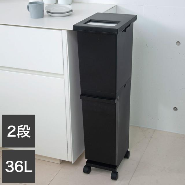 新輝合成株式会社 ユニード 分別スリム2段 36SBK ゴミ箱 コンパクト おしゃれ 36L ブラック(代引不可)【送料無料】