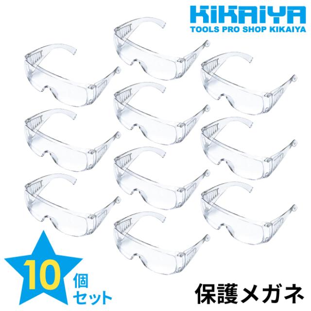 保護メガネ 10個セット セーフティゴーグル セーフティグラス 工事 板金 医療 実験 草刈り 伐採 KIKAIYA