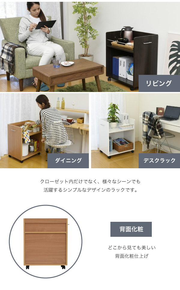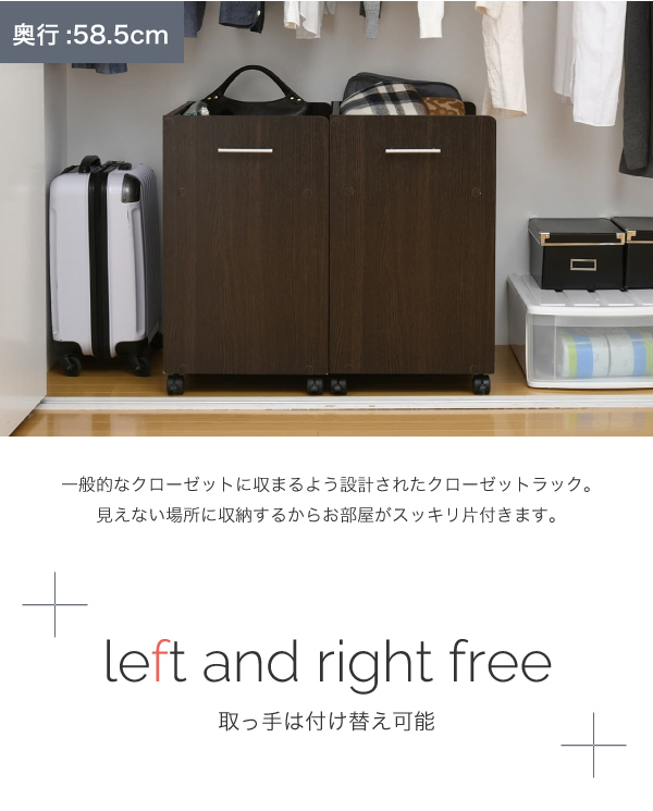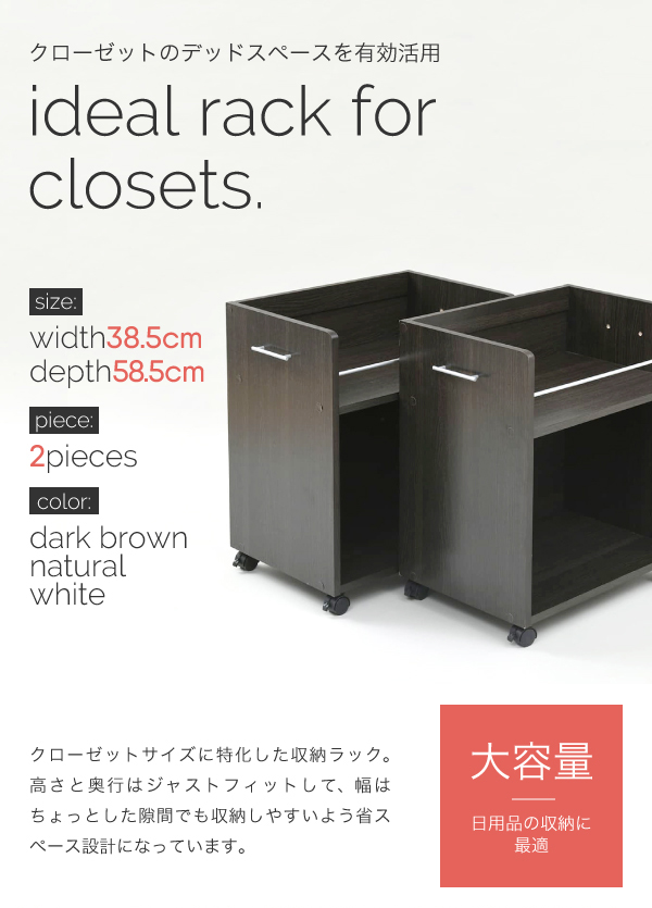 ワゴン クローゼットラック 2個セット 38.5x58.5cm ラック 収納 収納棚 押し入れ収納 クローゼット 収納 隙間収納 キャスター付き 取っ手付き 2段 大容量