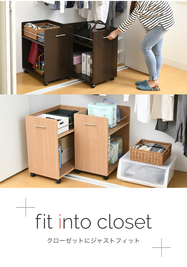 ワゴン クローゼットラック 2個セット 38.5x58.5cm ラック 収納 収納棚 押し入れ収納 クローゼット 収納 隙間収納 キャスター付き 取っ手付き 2段 大容量