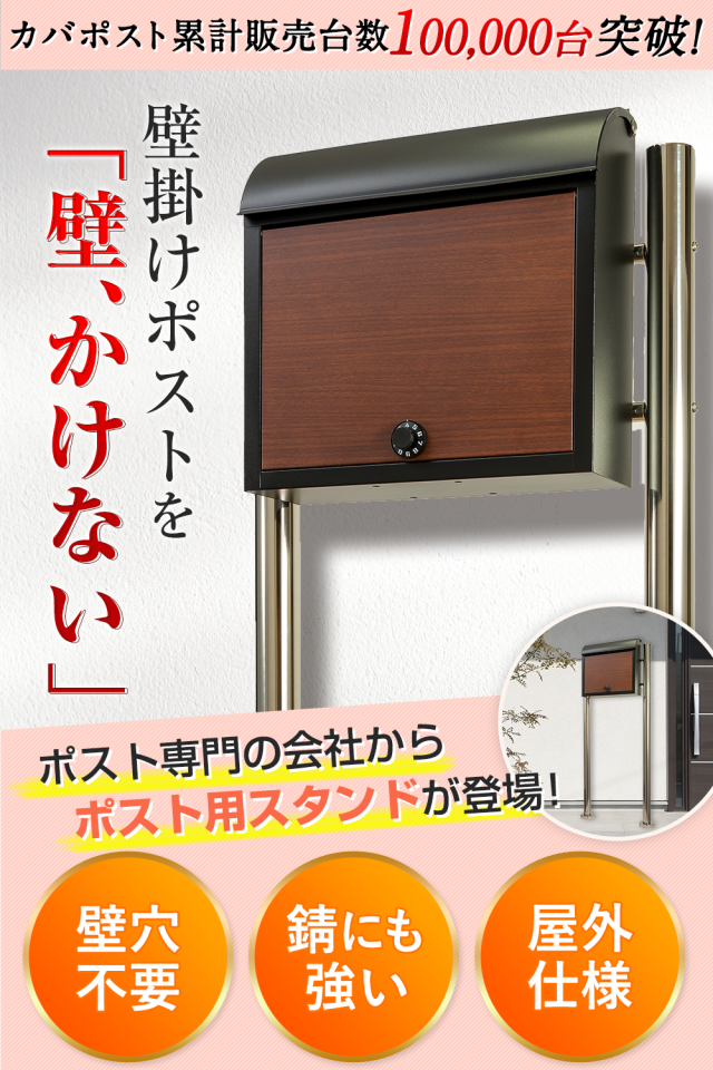 【セット商品】カバポスト 壁掛けポストがスタンドタイプに変身! スタンドとポストのセット 取付パーツ どこでもスタンド カイテン黒木目