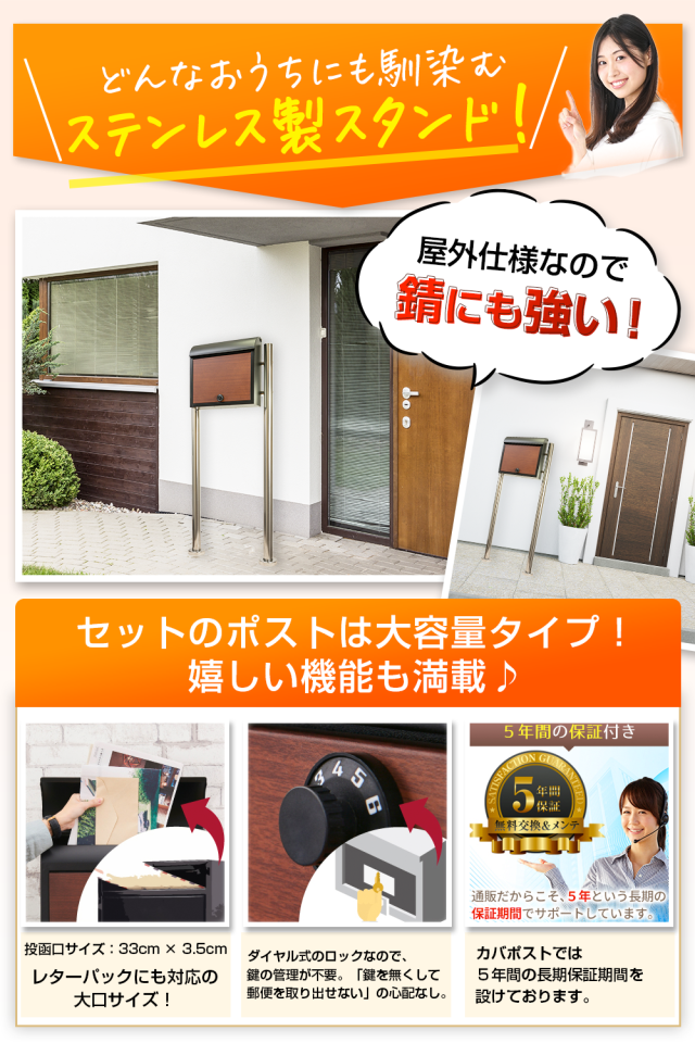 - 到着後、ポストとスタンドを確認したところスタンド上部側面にへこみがあった。 ダンボール内に隙間が多く、梱包状態が雑でした。 ポストは、綺麗だったが、セット購入だったので残念でした。
