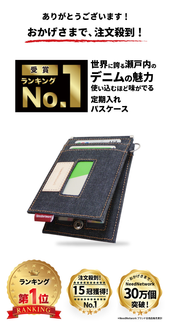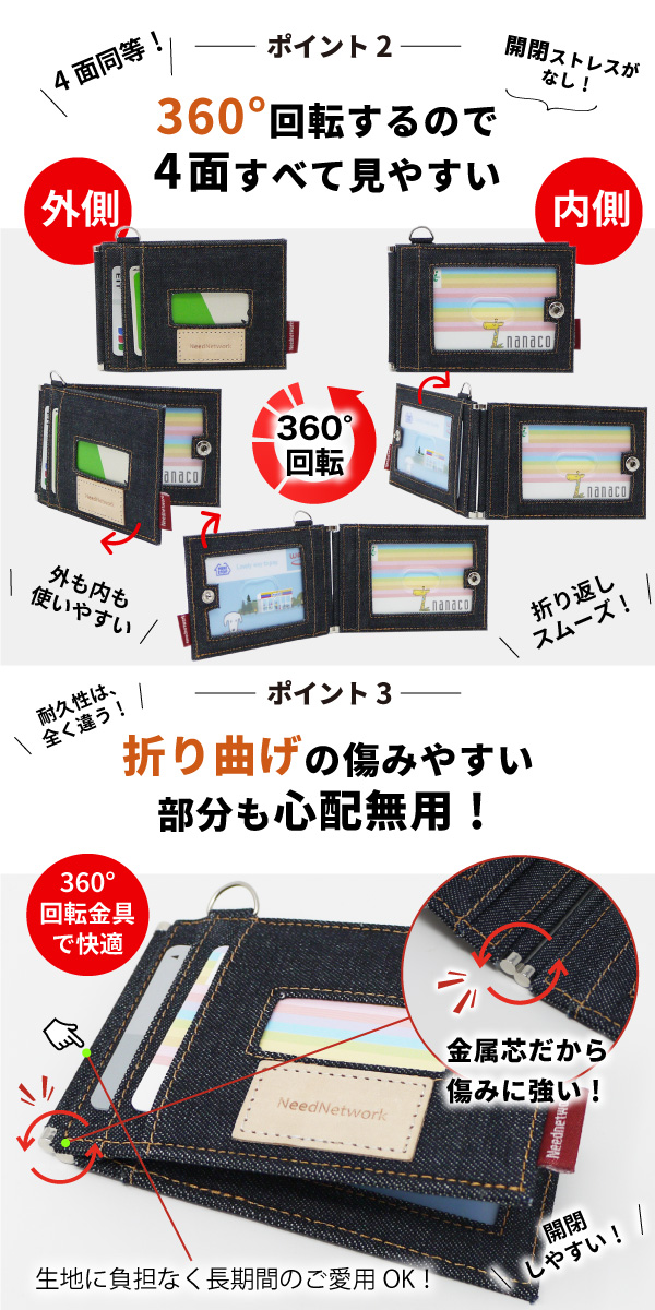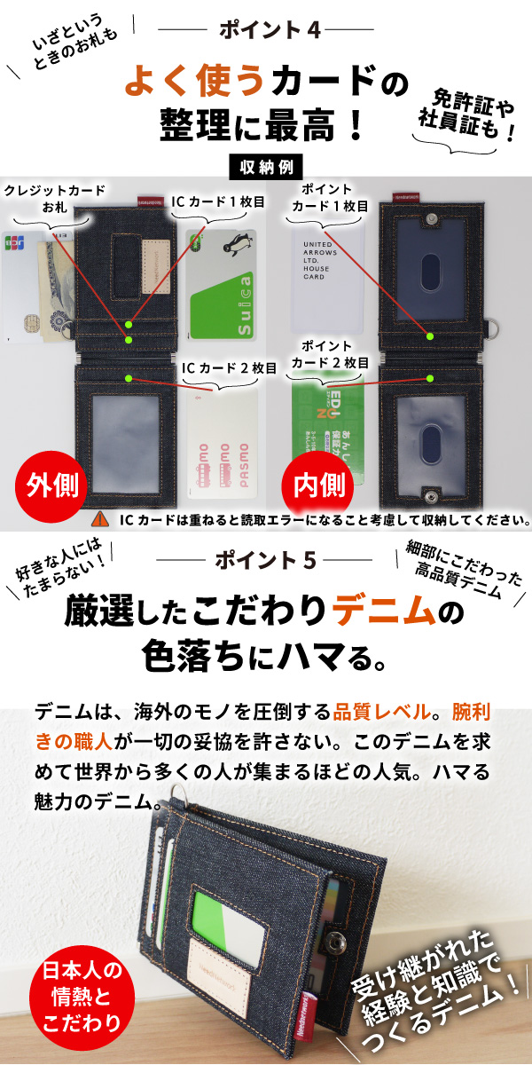 定期入れ パスケース 日本が誇るデニム レディース メンズ 二つ折り ICカード 2枚 4面 極薄 バタフライ パスケース 両面 5ポケット カード入れ
