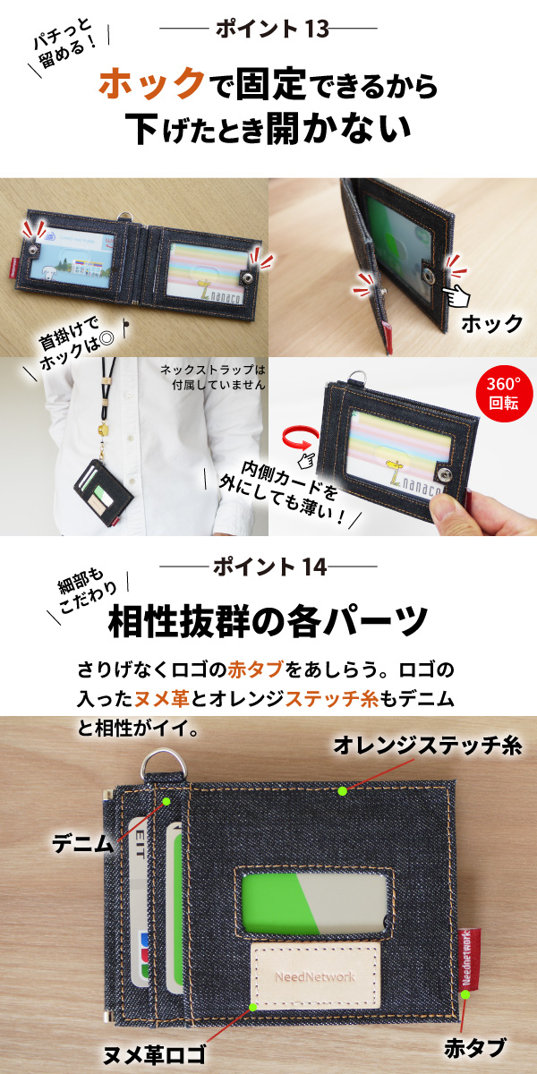 - スナップボタン付きで収まりも良いです、社員証やカードキー等これひとつで!