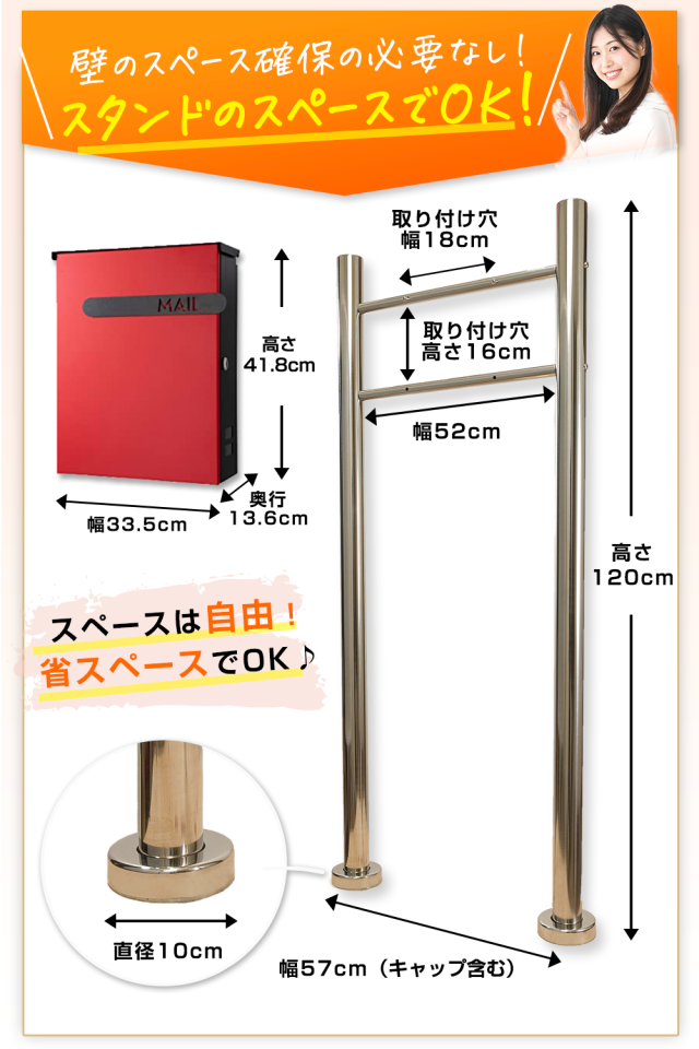 【セット商品】カバポスト 壁掛けポストがスタンドタイプに変身! スタンドとポストのセット 取付パーツ どこでもスタンド マンモス