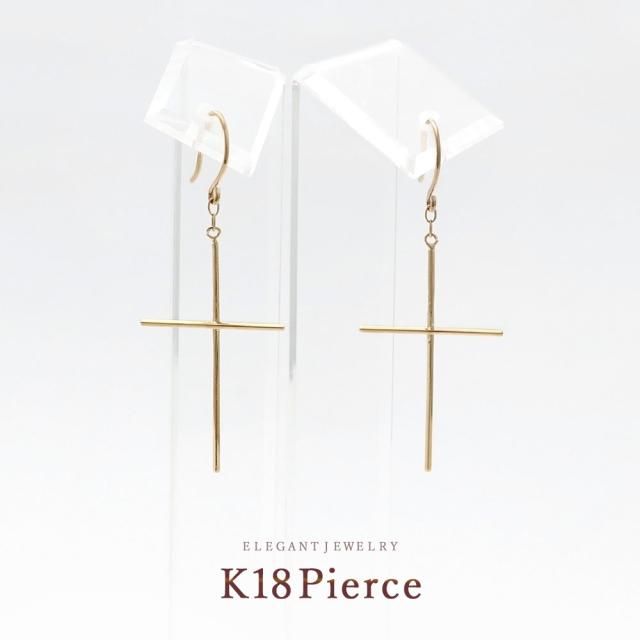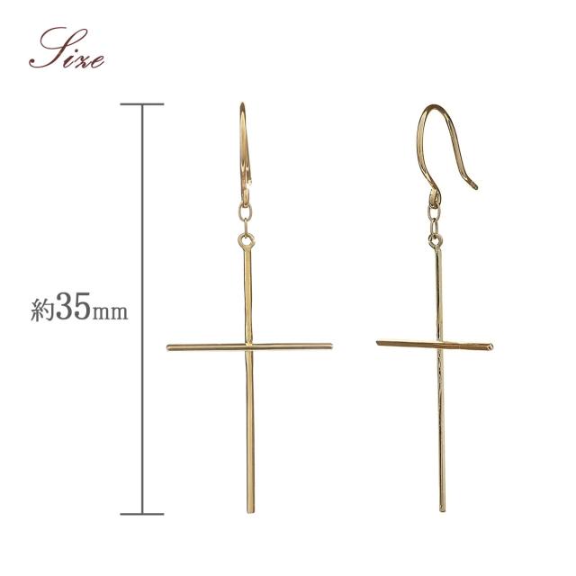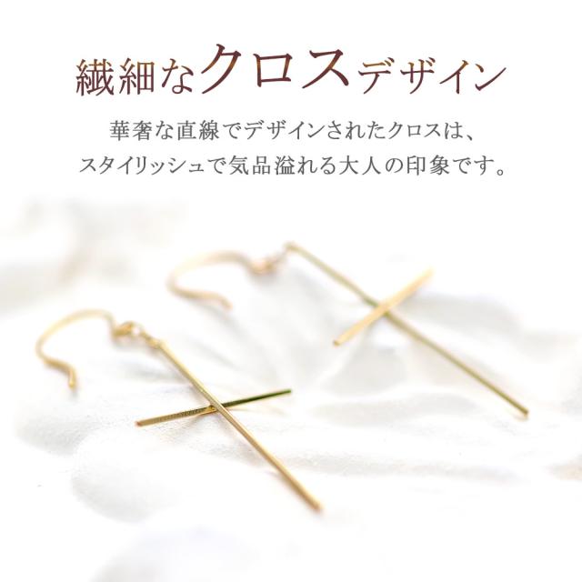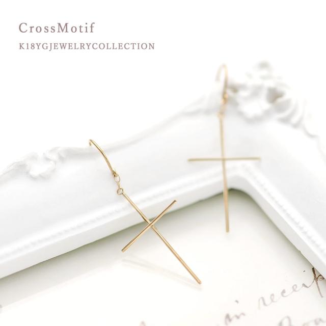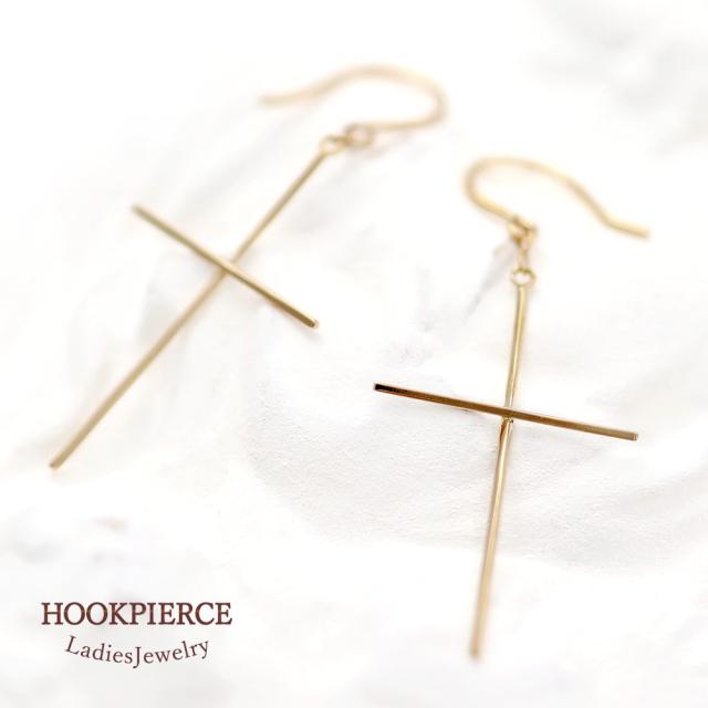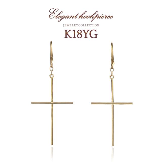 フックピアス レディース クロス モチーフ 18金 揺れる おしゃれ 18K イエローゴールド ジュエリー K18 十字架 フック ピアス 大人 かっこいい 華奢 シンプル クロスピアス 細い 地金だけ 地金のみ プレゼント 記念日 お祝い 誕生日 30代 40代 母の日 ギフト 2026