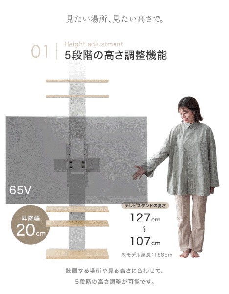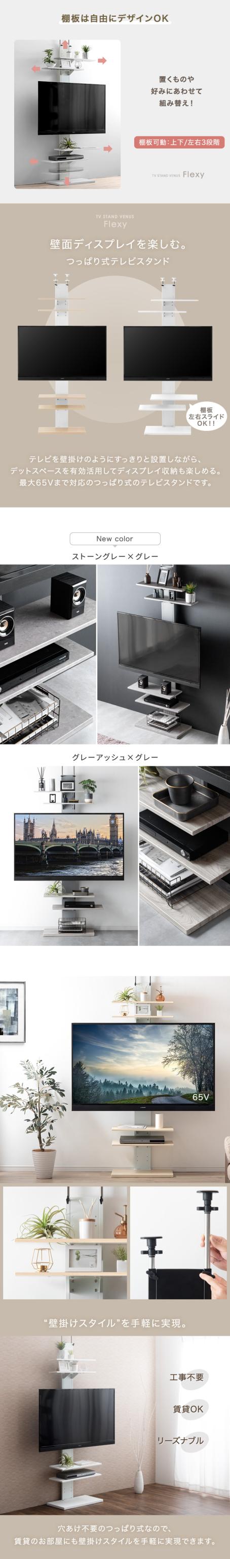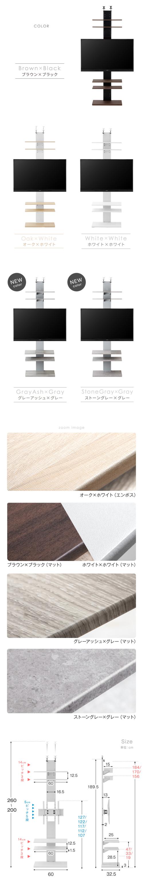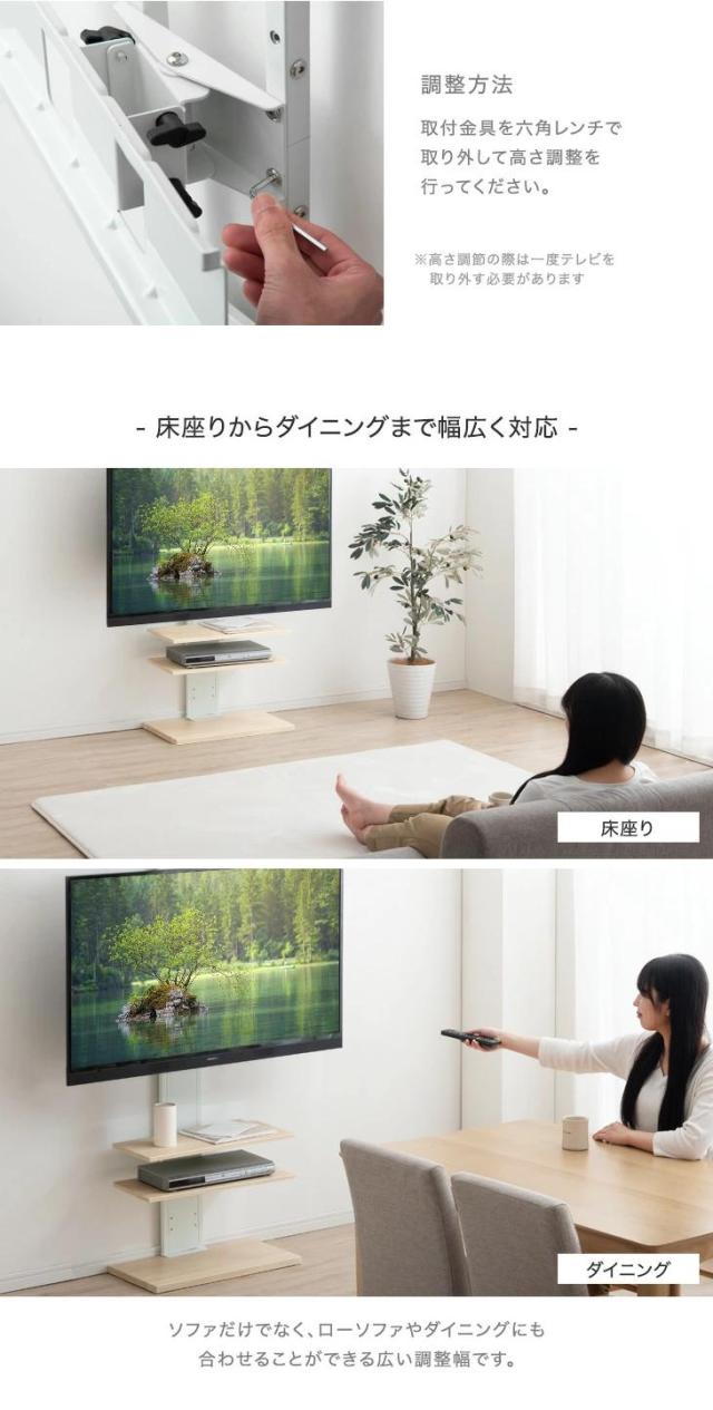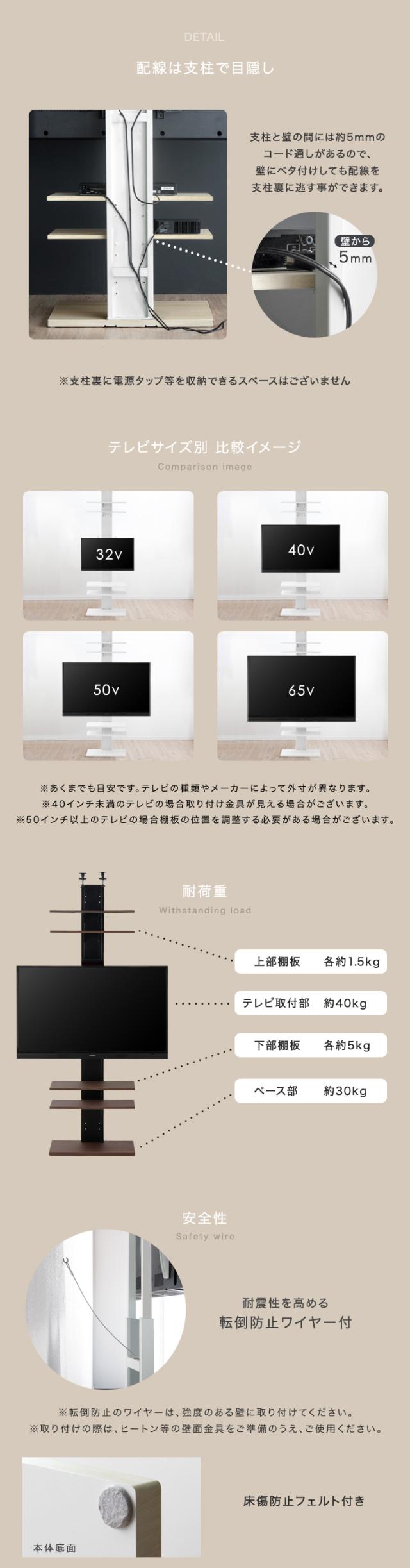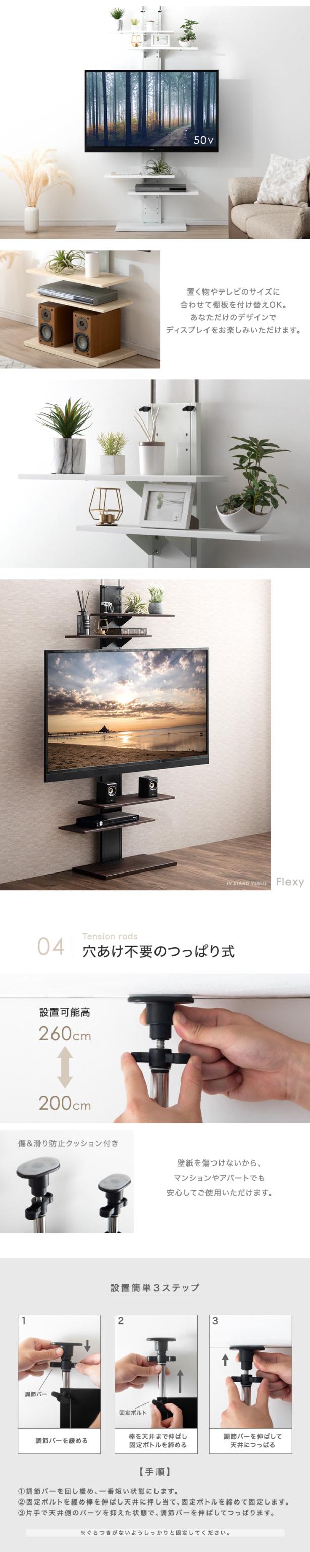突っ張り式 テレビスタンド 上下左右 首振り 32型 〜 65 型 コード収納 木目 テレビ台 TV台 壁掛け風 TVスタンド ブラウン ナチュラル ホワイト リビング コーナー