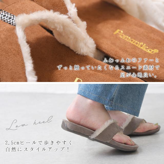 ふわっふわのファーとずっと触っていたくなるスエード素材で足が心地良い。