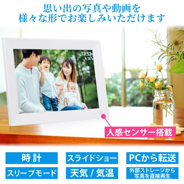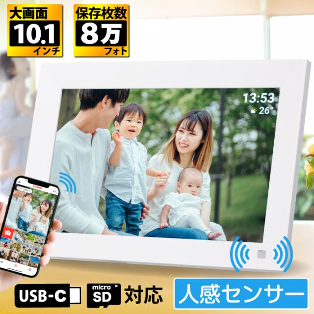 デジタルフォトフレーム フォトフレーム 人感センサー 10.1インチ タッチスクリーン タッチパネル スライドショー Wi-Fi対応 32GB内蔵 SDカード対応