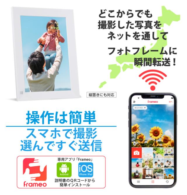 ・専用アプリ「Frameo」を使用します。簡単な設定ですぐにお使いいただけます。