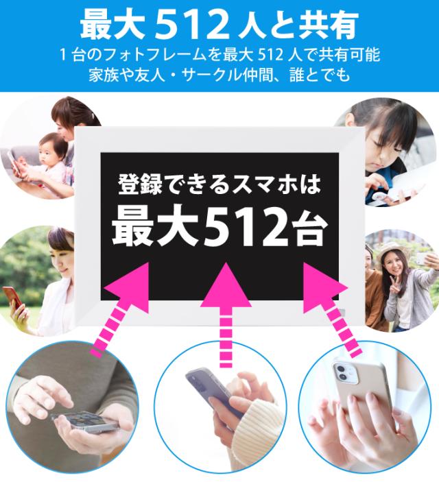 ・家族や友人の複数のスマートフォンと最大512台共有可能