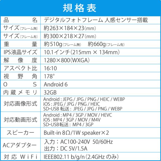 | 品名 | デジタルフォトフレーム 人感センサー搭載 |