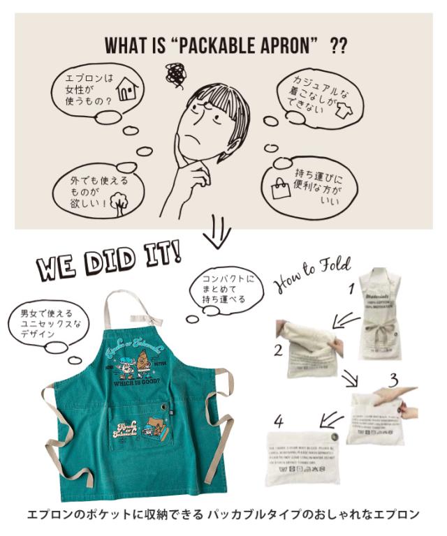 新作 AND PACKABLE アンドパッカブル 大人用 折りたたみ エプロン メンズ レディース おしゃれ かわいい ブランド 親子 お揃い 保育士 大きいサイズ イラスト ママ 娘 男性 女性 家族 アウトドア
