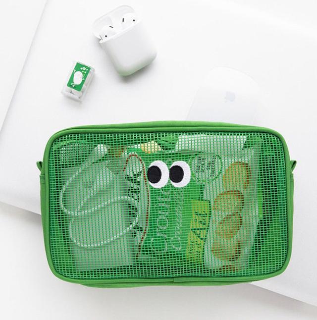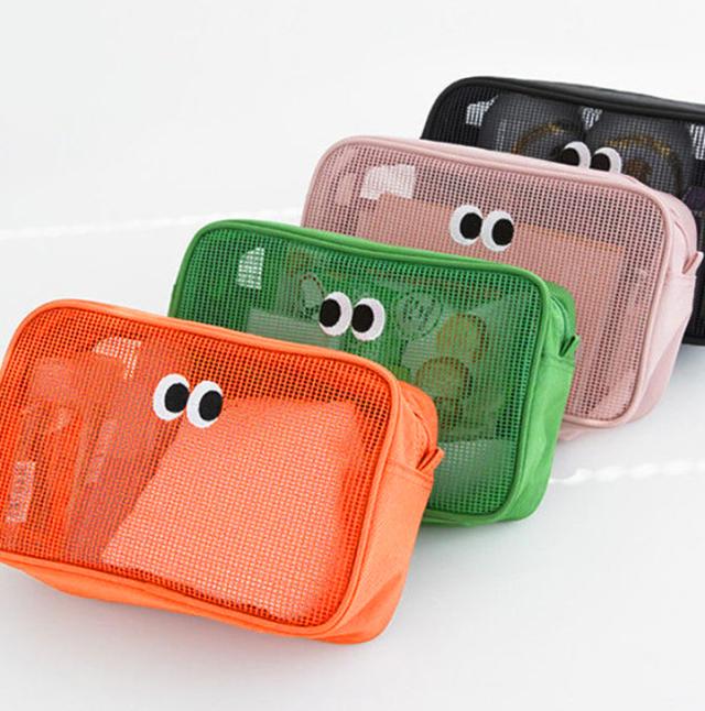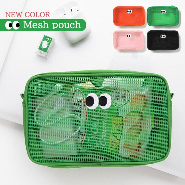 新作 目玉デザイン メッシュ 横型ポーチ レディース メンズ マルチポーチ 小物入れ コスメ メイク 化粧品 透け 刺繍 軽量 スクエア 韓国 おしゃれ かわいい 学校 旅行 トラベル 夏 海 ビーチ プール キッズ