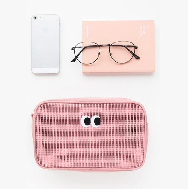 ●目玉の刺繍が可愛い横型メッシュポーチ