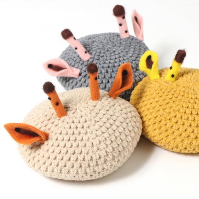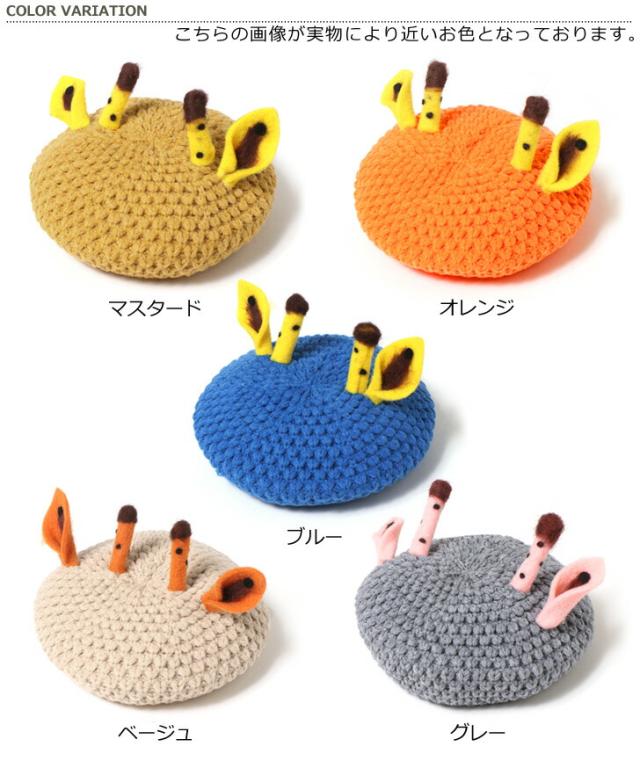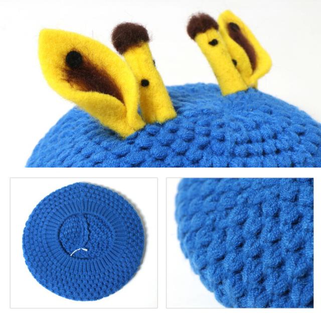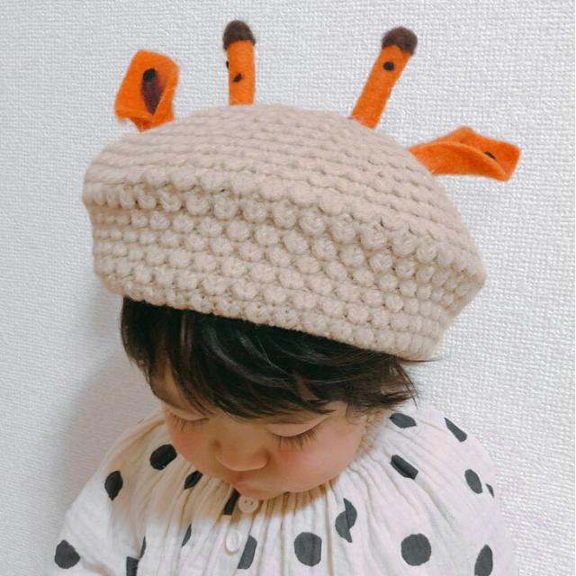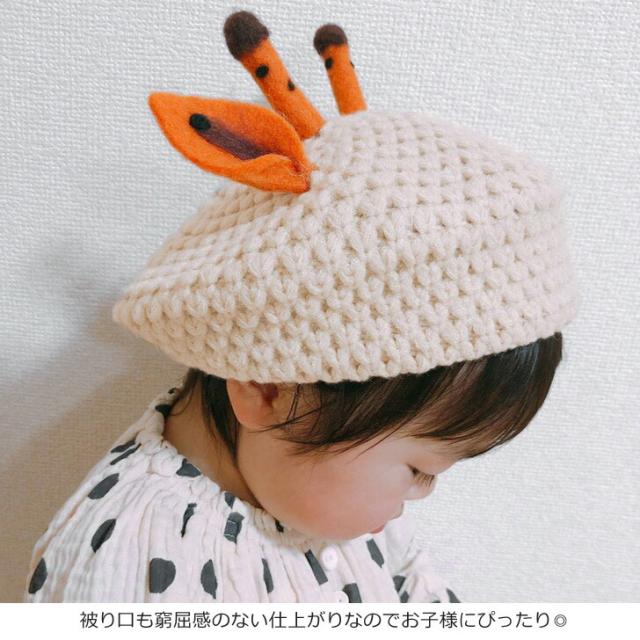 キリンの耳とツノの付いたとっても可愛らしいニットのベレー帽
