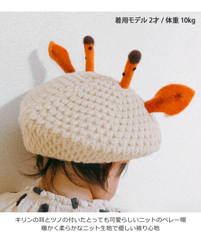 新作 【キッズ】キリンデザインニットベレー帽 帽子 子供 こども 子ども 角 つの ツノ 耳付き 動物 アニマル ニット帽 女の子 男の子 ジュニア 男女兼用 2歳 3歳 4歳 5歳 6歳 秋冬 KIDS プレゼント