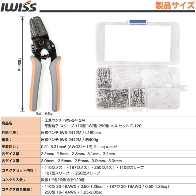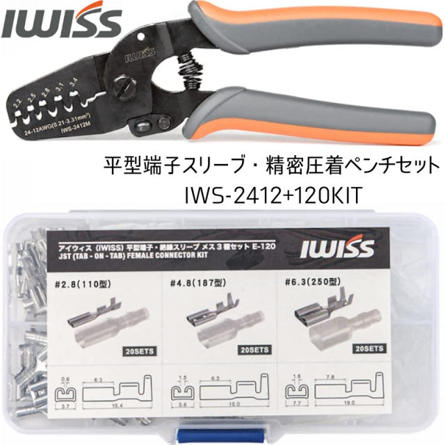 平型端子 スリーブ 110型 187型 250型・精密圧着ペンチIWS-2412M セット IWS-2412M+120KIT