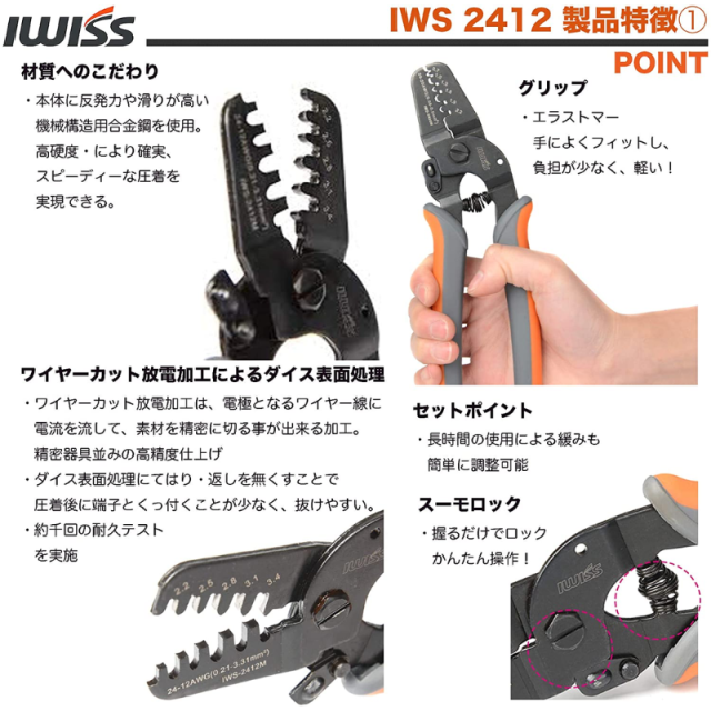 アイウィス(IWISS) 平型端子 スリーブ 110型 187型 250型 メス 精密圧着ペンチ IWS-2412M+120KIT