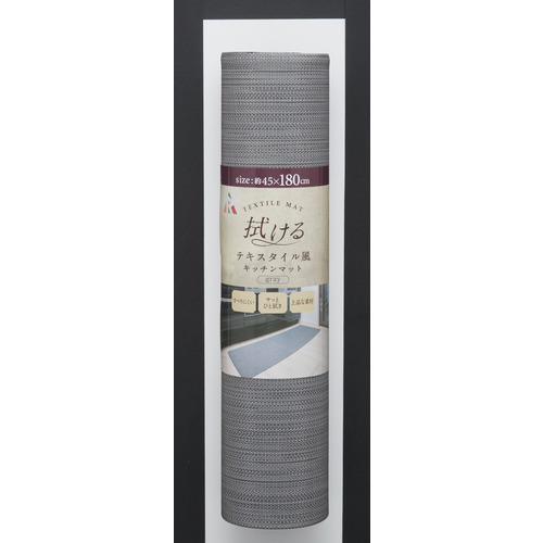 アール TK-004 拭けるテキスタイル風キッチンマット 180cm グレー