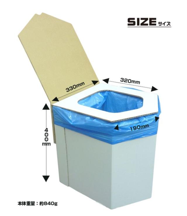 ワンタッチで組み立てができ、防災、避難、災害時の備蓄用に最適です。耐荷重テストでなんと!600kgまで耐える!丈夫な構造で安心です。本体は汚物袋を取り替えると何度も繰り返しご使用頂けます。※まめに換気を行い通気性の良い場所に置いて直接床に置かず湿度が上がらないように注意して下さい。 湿度が多い場所での保管はカビの発生や強度低下の原因となります。 ※汚物袋は付属しておりません。(汚物袋は45L用をご使用ください。) ※強度安定のため折り目に沿ってきっちりと折って下さい。