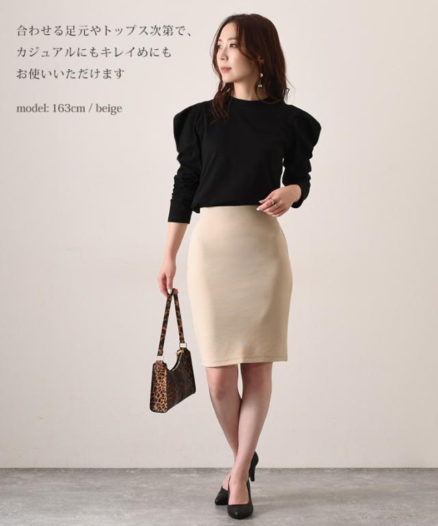 ボディラインにピタッとフィットするタイトシルエットで、女性らしい美ラインをメイクするスカート。