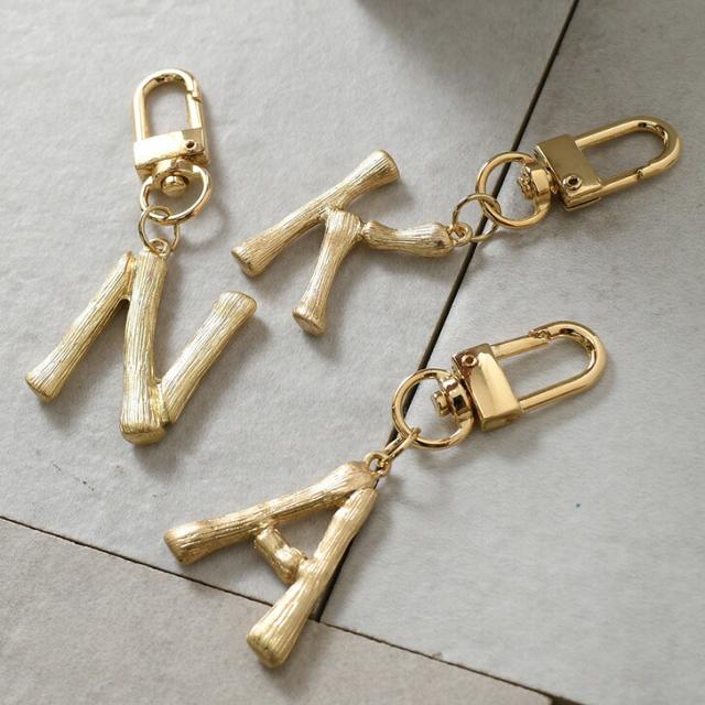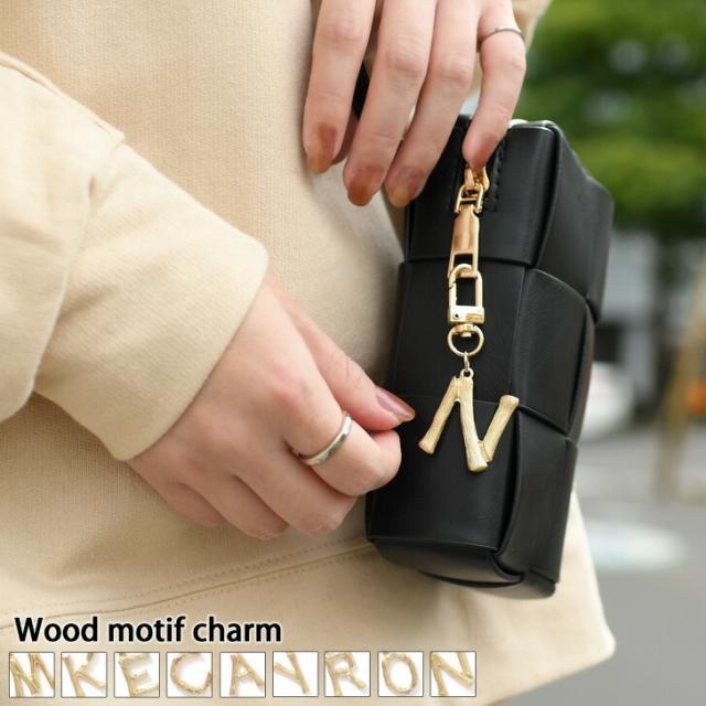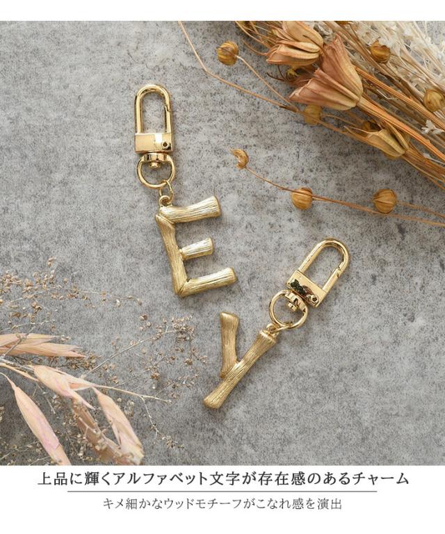 新作 ウッドモチーフゴールドアルファベットチャーム バッグチャーム キーホルダー キーチャーム レディース イニシャル バッグアクセサリー 木 文字 英語 レトロ 贈り物 金 推し お揃い 高見え 母の日 プレゼント