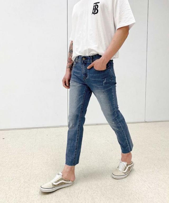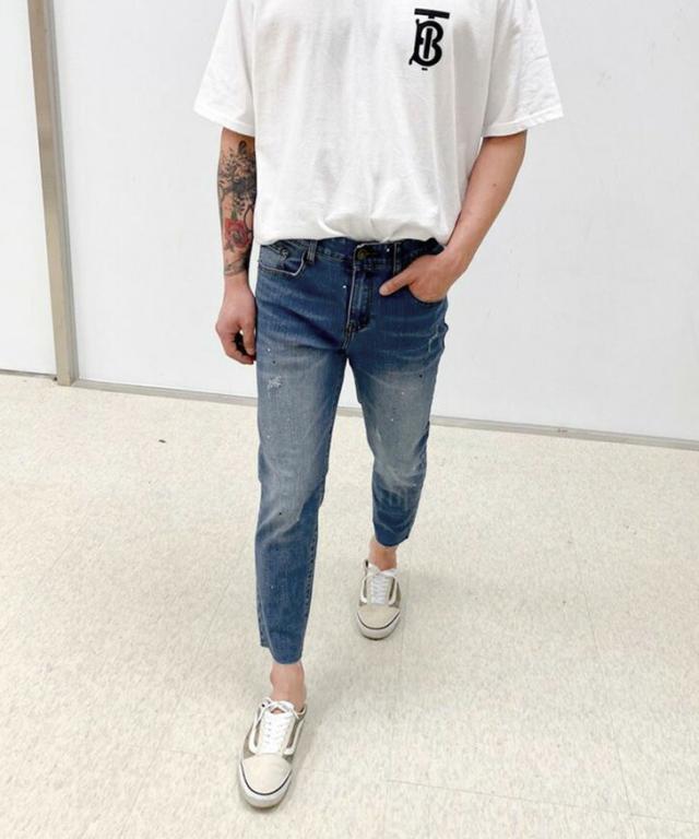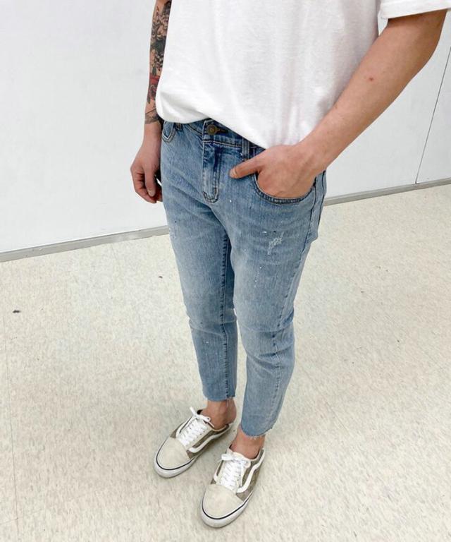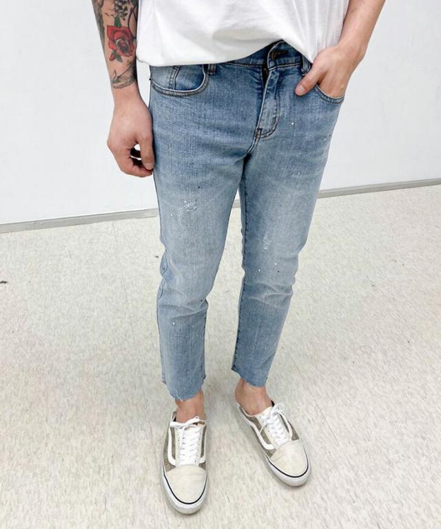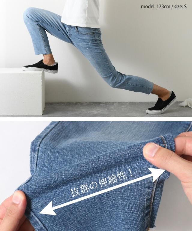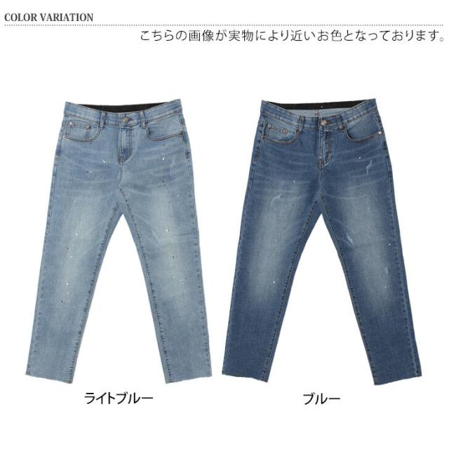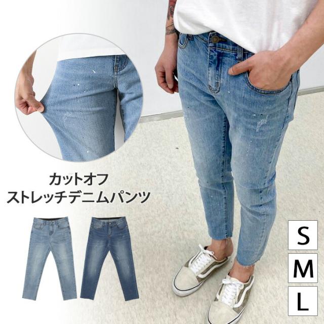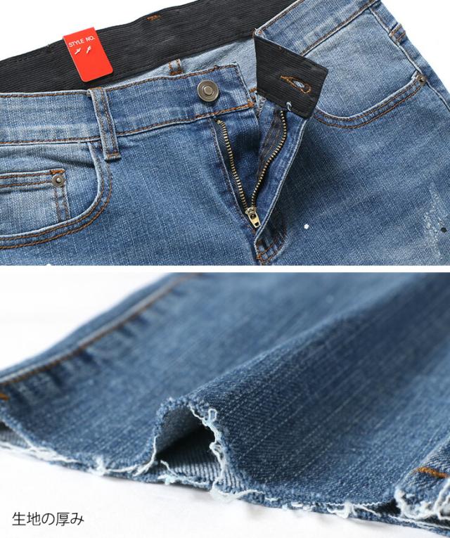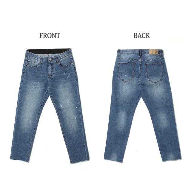 新作 カットオフスプラッシュデザインストレッチデニムパンツ メンズ ボトムス ジーンズ ジーパン Gパン 秋 伸縮性 おしゃれ カジュアル クラッシュ イージーパンツ 韓国ファッション リラックス オールシーズン