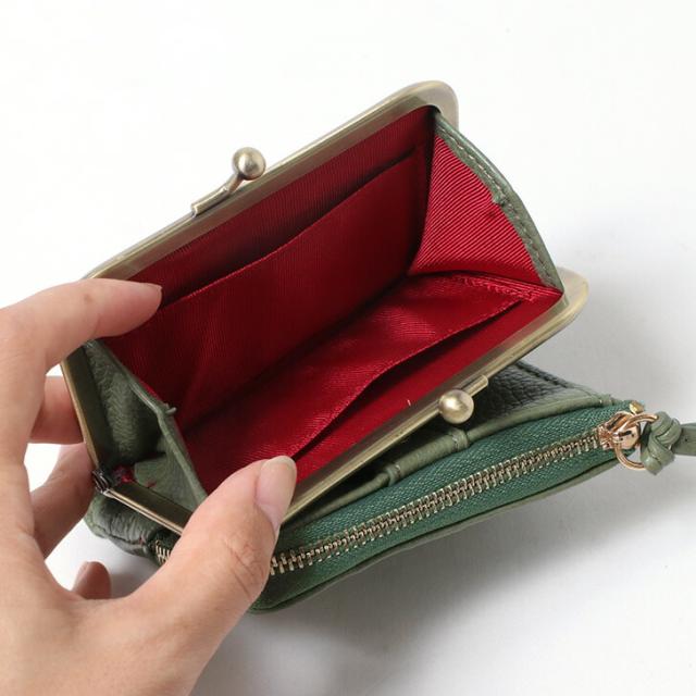 ■仕様:【外側】がま口ポケット×1、ファスナーポケット×1、カードポケット×1 【内側】札入れ×1、カードポケット×9、Dカン×1、キーリング×1、キーフック×3