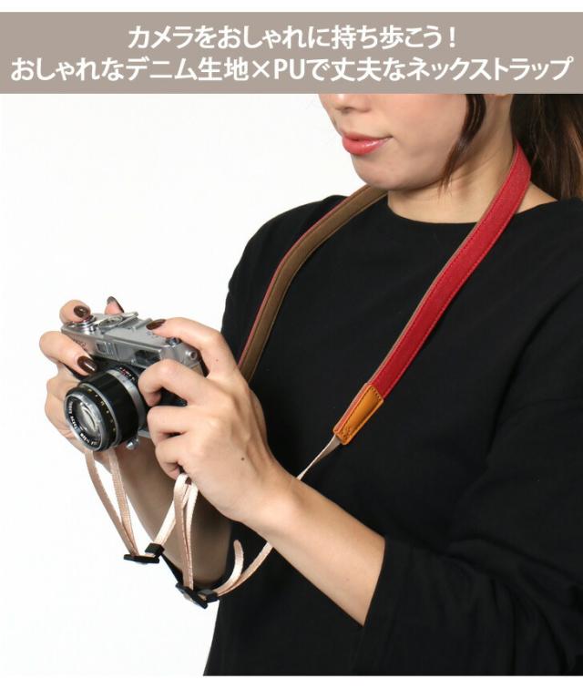 ●カメラをおしゃれに持ち歩こう!おしゃれなデニム生地×PUで丈夫なネックストラップ
