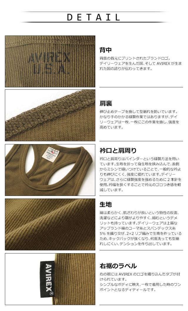 新作 AVIREX アビレックス タンクトップ avirex アヴィレックス デイリー 6143503 618363 インナー トップス 無地 メンズ 男性 リブ プレゼント ジム 黒 白 ノースリーブ おしゃれ 厚手 肉厚 クーポン対象外