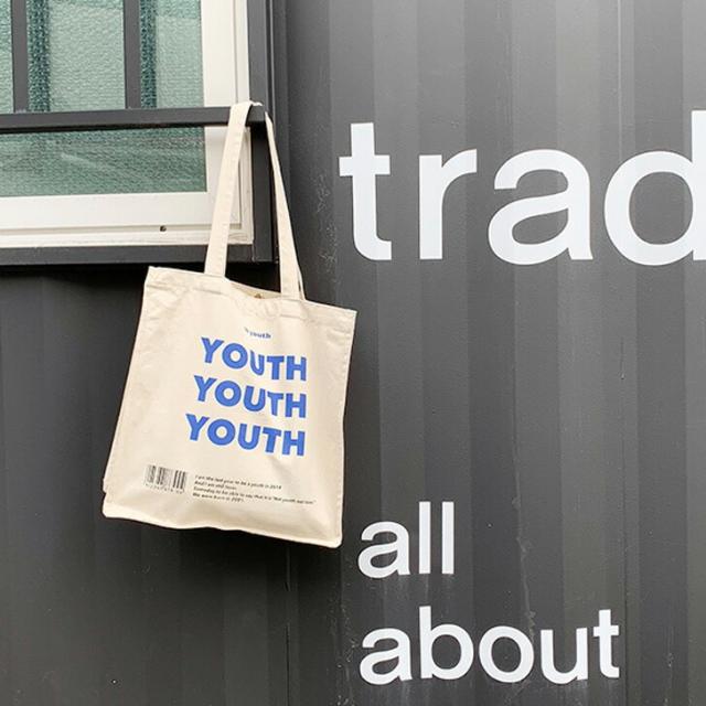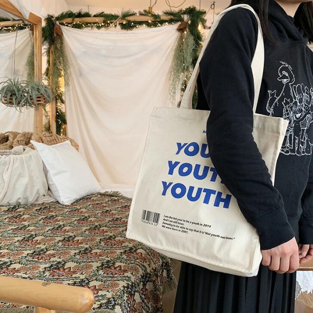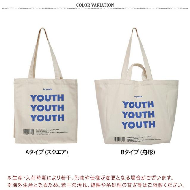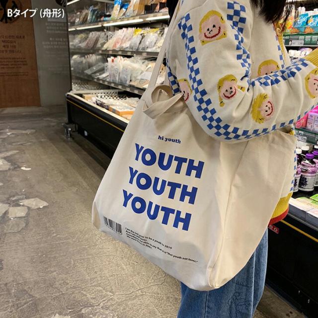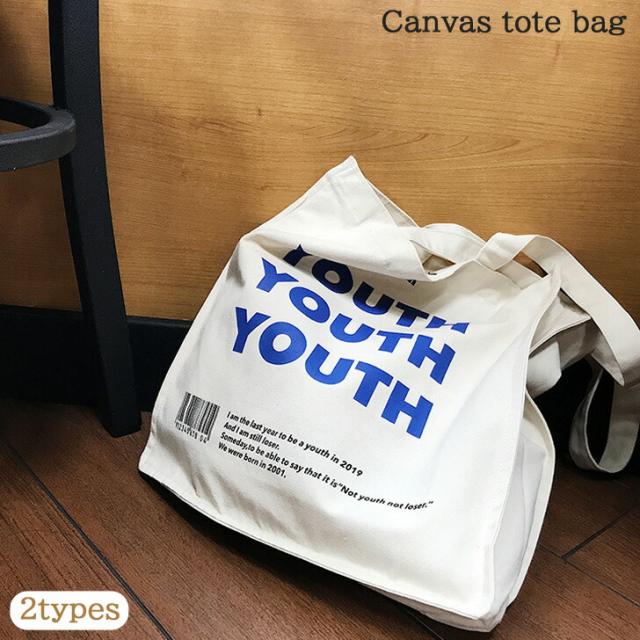 新作 【選べる2タイプ】 YOUTHロゴ キャンバストート レディース バッグ トートバッグ 大きめ a4 肩掛け 手提げ 縦型 縦長 横 軽い かわいい おしゃれ マチ付き サブバッグ エコバッグ 通勤 通学 学生 母の日 プレゼント