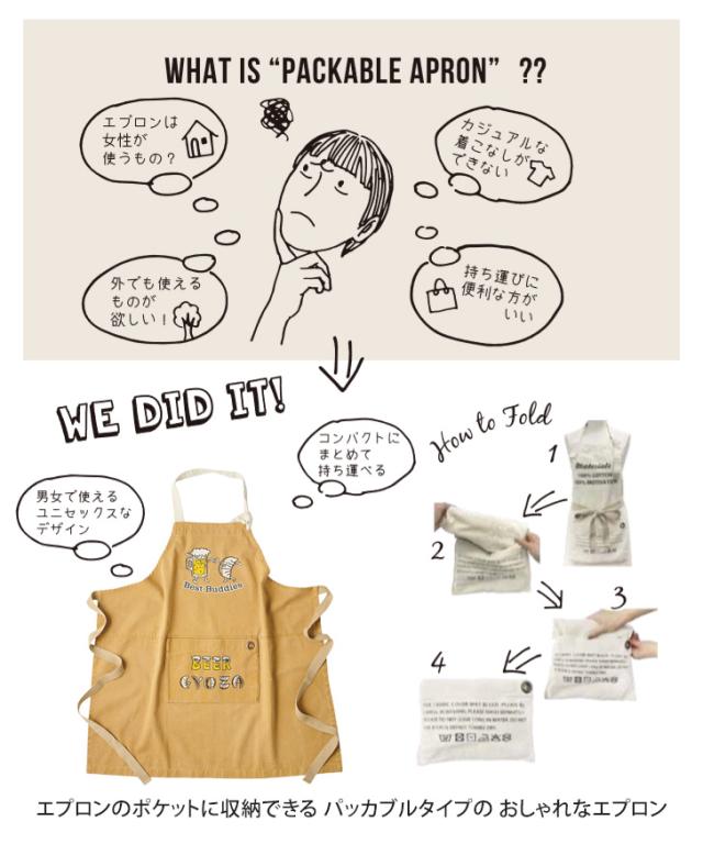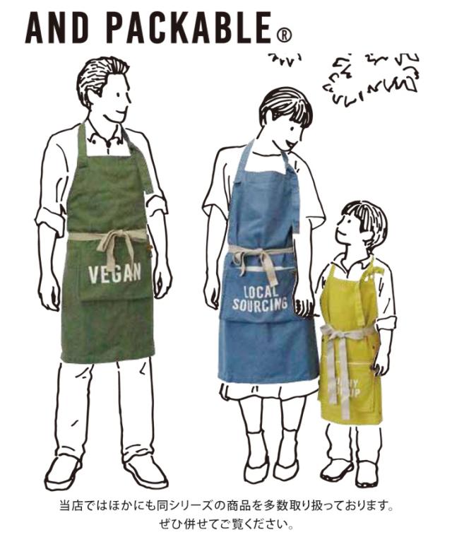 新作 アンドパッカブル AND PACKABLE エプロン おしゃれ 大きいサイズ レディース メンズ かわいい 保育士 折りたたみ 首掛け 綿100% イラスト ポケット キッチン 台所 掃除 ママ 女性 男性