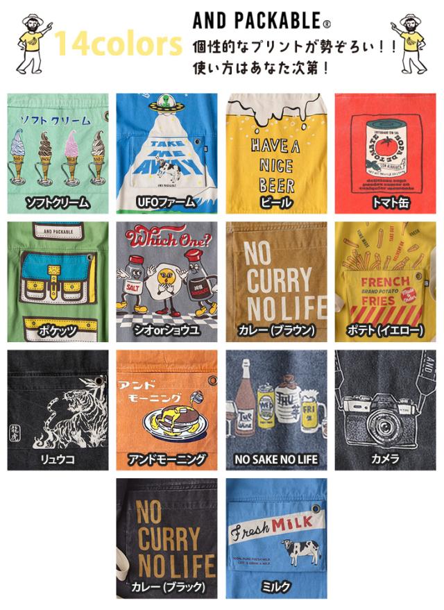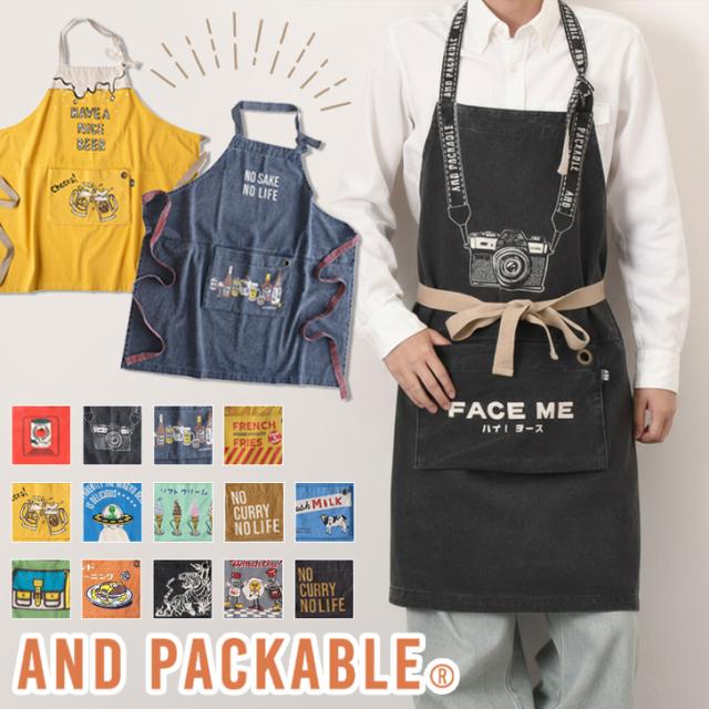 新作 AND PACKABLE アンドパッカブル 大人用 折りたたみ エプロン メンズ レディース おしゃれ かわいい ブランド 親子 お揃い 保育士 大きいサイズ イラスト ママ 娘 男性 女性 家族 アウトドア