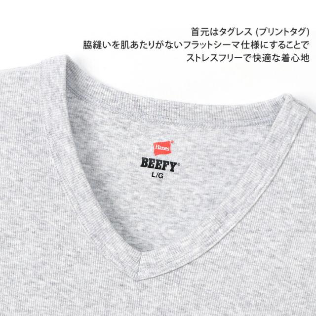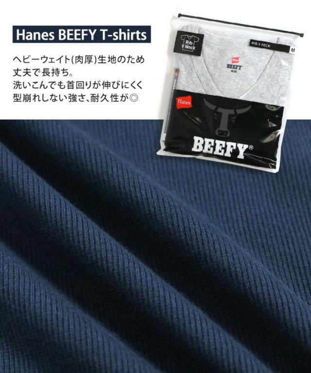 新作 Hanes BEEFY ヘインズ ビーフィー リブ Vネック Tシャツ メンズ トップス 半袖 無地 ブランド ストレッチ 伸縮性 厚手 インナー ヘビーウェイト 肉厚 夏 綿混 白 父の日 プレゼント ギフト HM1-T102