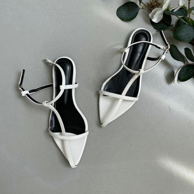 23.0cm 24.0cm 25.0cm 軽い 韓国ファッション ゴージャス エレガント カジュアル きれいめ 上品 高級感 フェイクレザー エコレザー サスティナブル 美脚 モノトーン モノクロ 細ストラップ ギフト プレゼント 贈り物 母の日 ママ シューズ オフィス OL