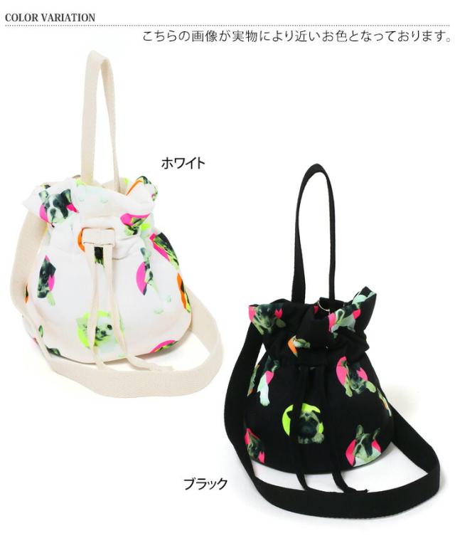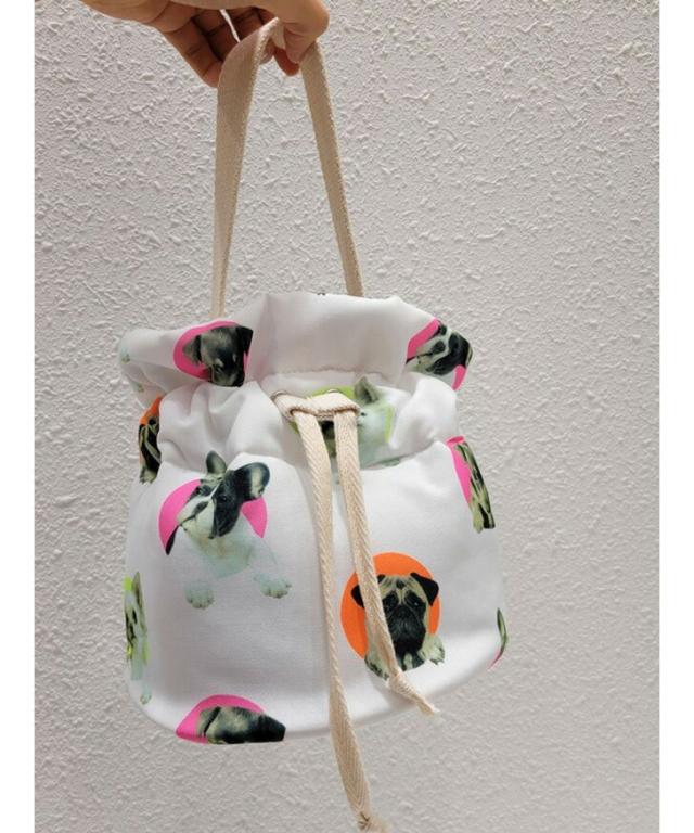 新作 ドッグプリント2way巾着バッグ レディース ショルダーバッグ ハンドバッグ ミニバッグ バケットバッグ 布 キャンバス 斜めがけ 肩掛け 犬 鞄 巾着型 上品 カジュアル 個性的 ユニーク 韓国ファッション 母の日 プレゼント