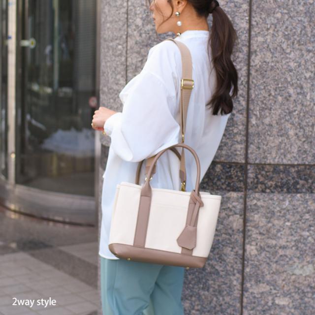 ショルダーストラップを持ち手の裏側の金具に取り付ければ2way仕様に◎
