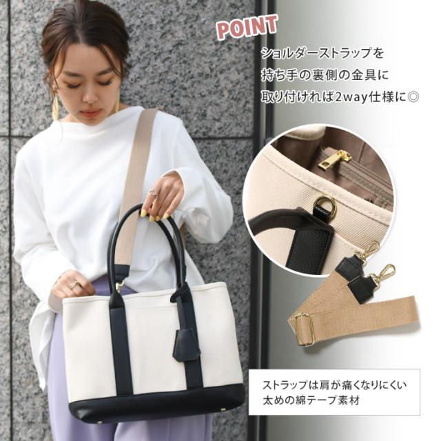 ショルダーストラップを持ち手の裏側の金具に取り付ければ2way仕様に◎