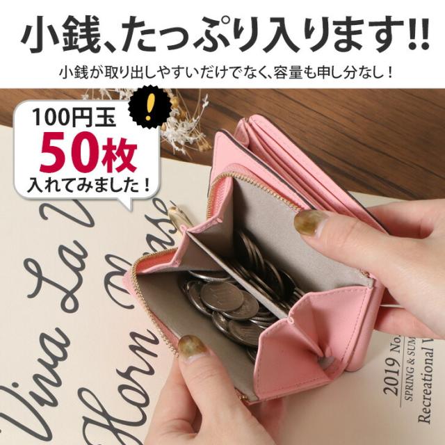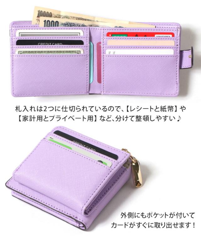 新作 サフィアーノフェイクレザー ベルト付き 二つ折り財布 レディース L字ファスナー 小さい かわいい コンパクト 小さめ 小銭入れ 札入れ 2つ コインケース カード入れ カードケース おしゃれ 上品 大容量 母の日 プレゼント