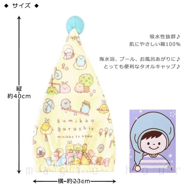 ◆ すみっコぐらし 人気 キャラクター キッズ ジュニア 子ども タオルキャップ プール スイミング帰りに♪ 子供 タオル 帽子 ◆