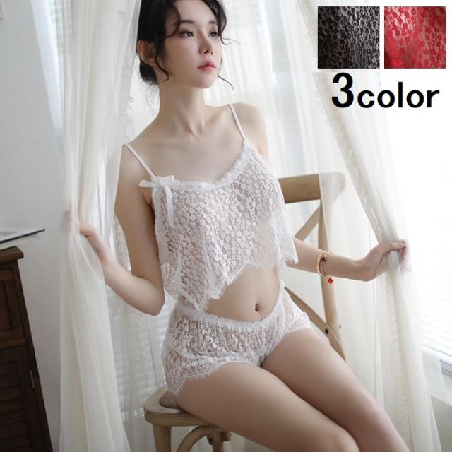 LG157 シフォン メッシュ ルームウエア セットアップ 透け レース 刺繍 ベビードール セット 花柄 ネグリジェ セクシー ランジェリー セクシーランジェリー セクシー下着