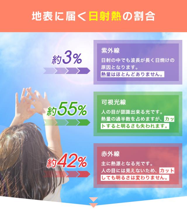 なのに対して、赤外線が運ぶ日射熱は42%以上といわれています。