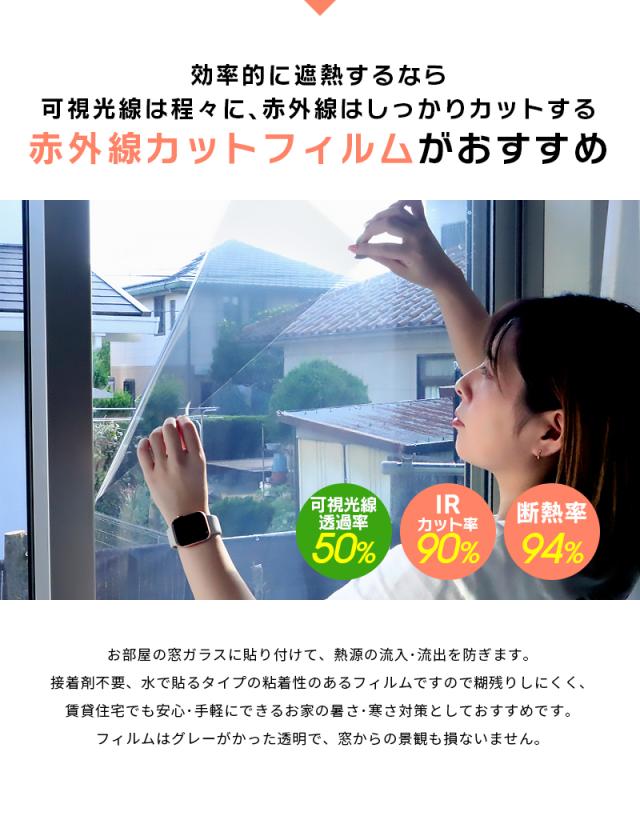 水だけでガラスに貼れる 赤外線カット 断熱フィルム!