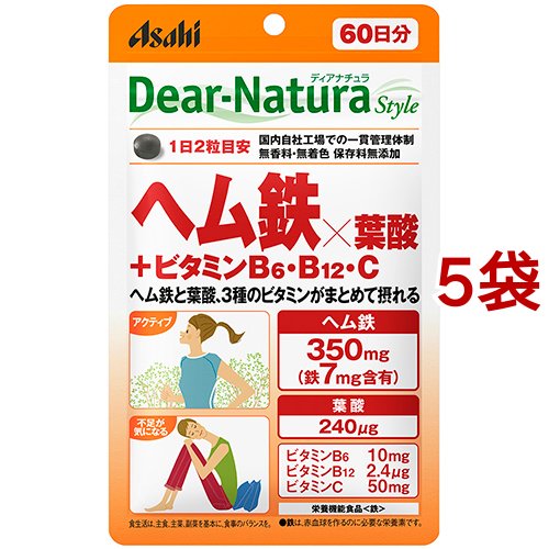 ディアナチュラスタイル ヘム鉄×葉酸+ビタミンB6・ビタミンB12・ビタミンC(120粒*5袋セット)[ヘム鉄]