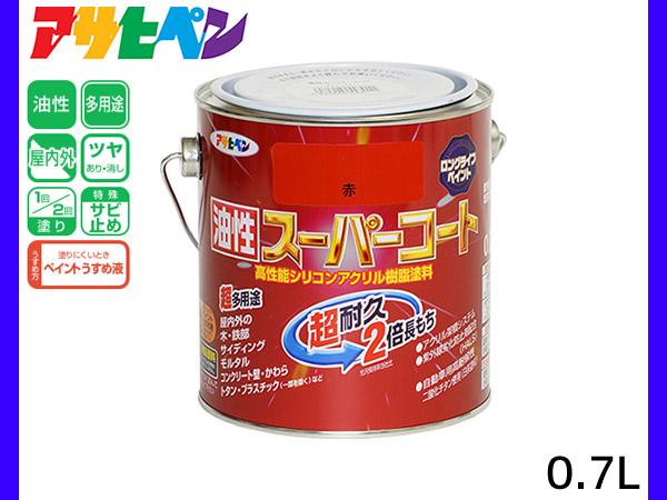 油性スーパーコート 0.7L 赤 塗料 超耐久 2倍長持ち DIY 錆止め剤 アサヒペン