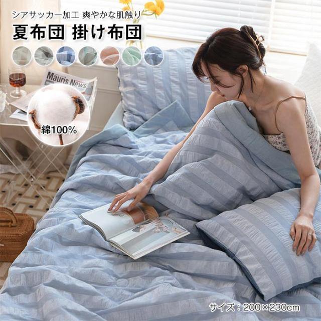 肌掛け布団 夏布団 綿100% シアサッカー加工 掛け布団 肌布団 シングル 大豆繊維 掛布団 掛ふとん 北欧 おしゃれ 抗菌防臭 夏用 布団 涼感 吸湿 通気性抜群 洗える 優しい肌触り 丸洗いOK 春 夏 新作 200×230cm