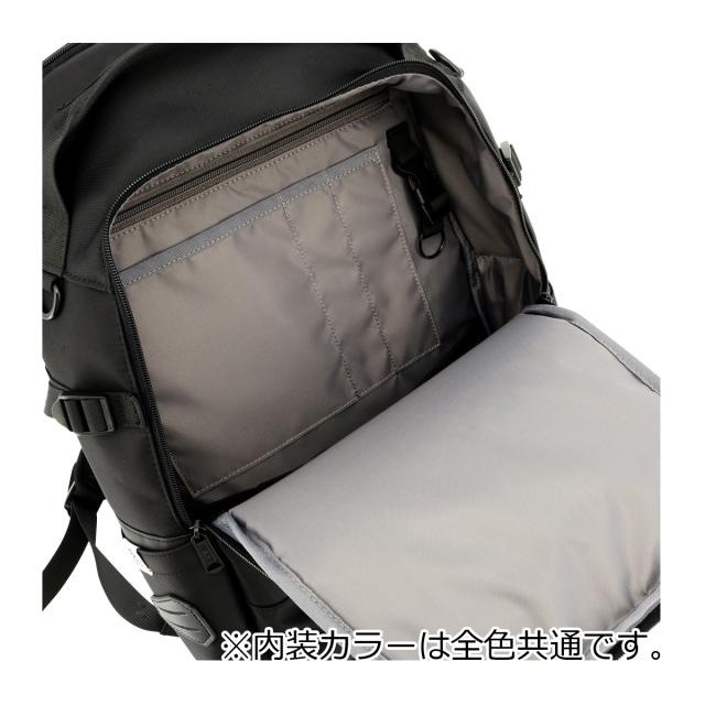フライトジャケットをモチーフに高密度で織った生地を使用しメタルプレートにブランドネームをつけることで大人な雰囲気に仕上げました。また、正面にメタルファスナー配し武骨でミリタリーブランドらしい面構えになっています。