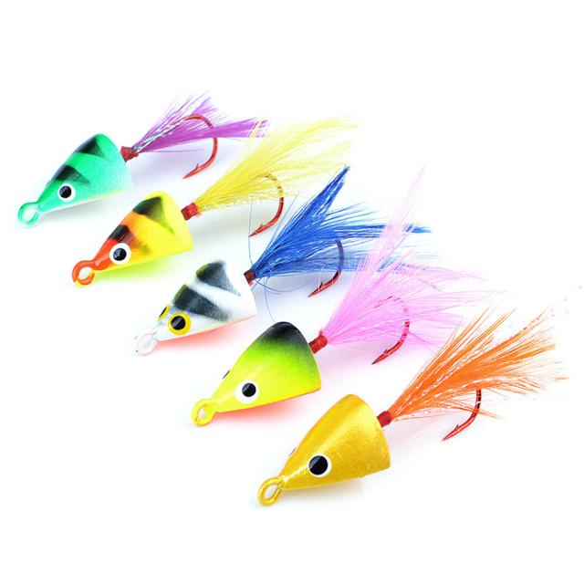 5個の炭素鋼釣りルアー5g-11g釣り用フェザー付きマルチカラーアイスフィッシングベイト