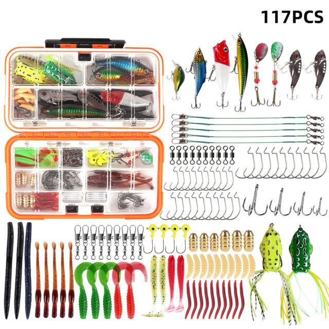 117本/セット釣りルアーベイトタックルキットセットクランクベイトスピナーベイトクランクフックなど